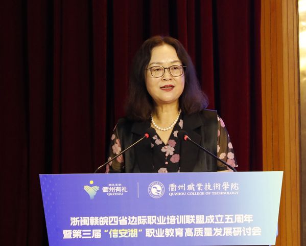 郑亚莉致辞时表示,浙江省中华职业教育社将充分发挥联系平台、产教融合校企合作平台作用,推动浙闽赣皖四省边际职业教育互联互通、共建共享,为助力四省边际职业教育和经济社会高质量发展贡献力量。