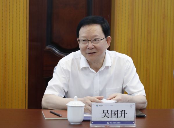 6月19日,市人大常委会党组书记、主任吴国升,党组成员、秘书长赖瑞洪,教科文卫工委主任王东升,研究室副主任郑立华一行来校调研,我校党委书记徐须实、副书记何百通陪同。