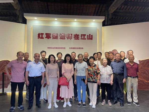 在讲解员的带领下,退休党支部的党员们参观了“红军挺进师在江山”主题馆。馆内通过参观真实史料、珍贵照片、影视视频,全面展现红军挺进师在江山的革命历程。党员们认真聆听讲解员的讲解,不时驻足观看,感受着那段艰苦卓绝的革命岁月。