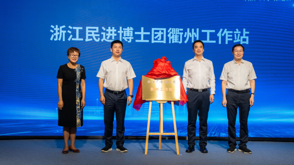 校党委书记徐须实和相关领导一起为民进“开明青年”专家工作站(浙江衢州)、浙江民进博士团衢州工作站揭牌。