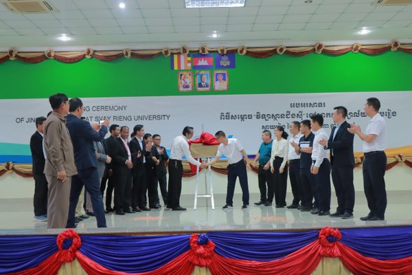 为深入贯彻落实国家“一带一路”倡议,推进职业教育“教随产出”,8月28日至8月31日,我校以余建军副校长为团长的专家团应邀访问柬埔寨柴桢大学,举行电气自动化技术“经世学堂”揭牌仪式,开展“中文+职业技能”交流,到衢职院—通天星“丝路学院”开展业务培训。国家教育部中外人文交流中心主任于长学、柬埔寨教育青年与体育部副国务卿兼董事会主席索姆·拉塔纳博士线上出席相关活动,柴桢大学副校长列奥克·维瑞克,柬埔寨浙江总商会副会长兼副秘书长祝义红、副会长曾煜,浙江通天星集团柬埔寨全资子公司加利福家具材料有限公司负责人曾学礼等出席相关活动,柴桢大学200余名师生、加利福50余名员工参加。