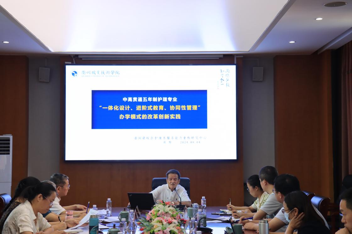 9月4日,2024年浙江省护理专业中高职一体化教师教学创新团队会议暨协同研训活动在衢州护士学校举行。我校党委委员、副校长姚水洪,我校特聘教授、浙闽赣皖医护康养服务能力重构研究中心主任胡野,教务处、医学院、创新团队成员及中高职院校教师代表参加,我校医学院副院长甘椿椿主持。