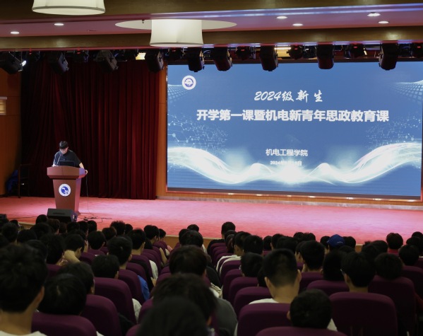 9月19日上午,机电工程学院开展开学第一课暨首场机电新青年思政教育课。吉利控股集团威睿电动人才经营部高级经理王宜恒,江南网页版继续教育学院副院长、技能大师王胜应邀出席并发言。机电工程学院党总支书记朱峻,党总支副书记、院长魏小华,班子成员,全体辅导员、新生班主任出席。机电工程学院545名大一新生参加。开学第一课由机电工程学院24级年级辅导员徐梦扬老师主持。