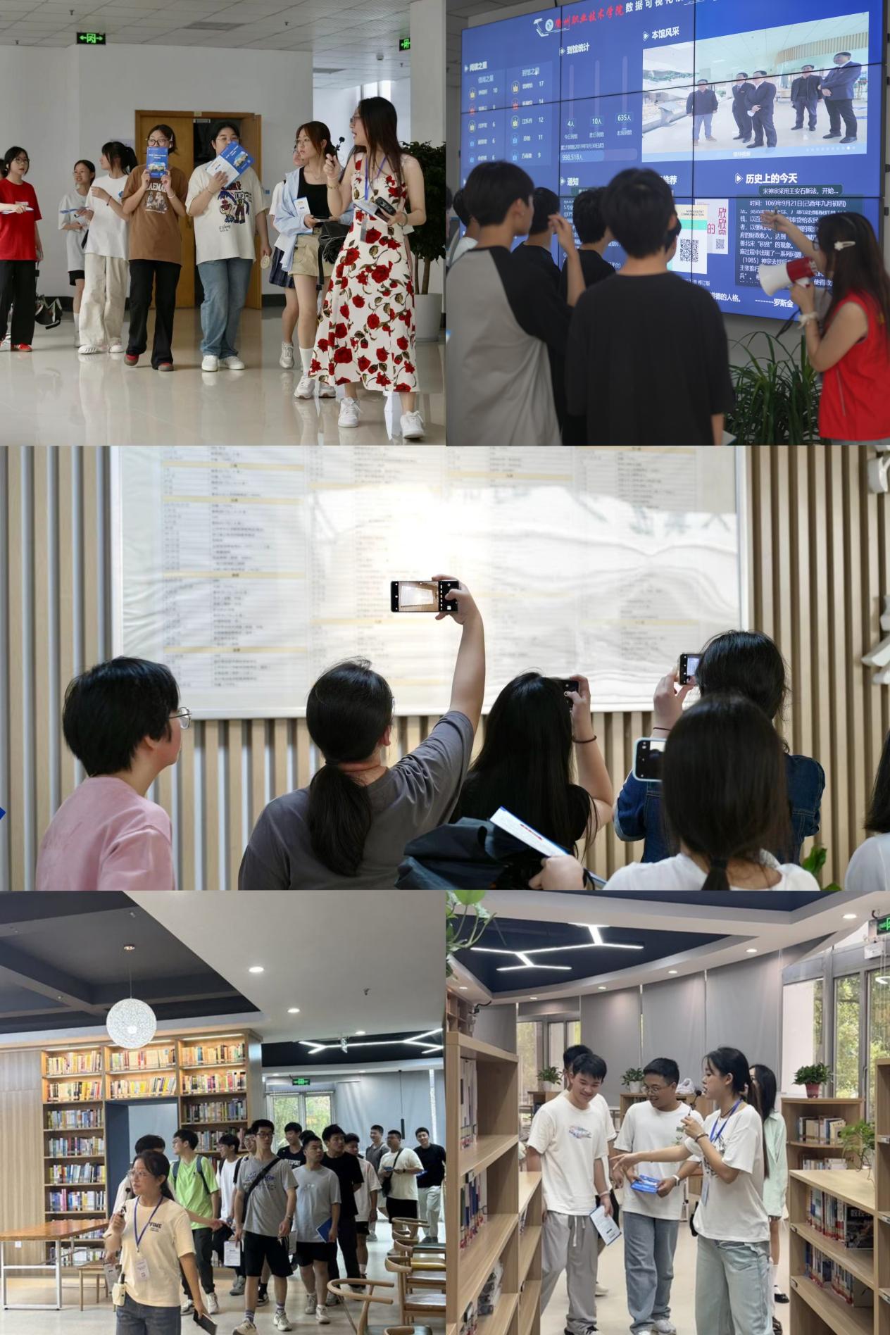 来自不同年级、专业的学生志愿者们,身着统一的志愿服务服装,以饱满的热情和耐心的态度,分组带领新生参观图书馆。他们详细介绍了图书馆的布局、各个区域的功能、以及借还书流程,让新生们在轻松愉快的氛围中快速融入图书馆环境。