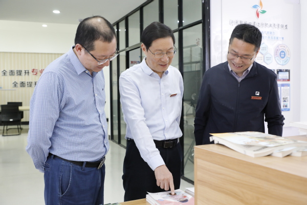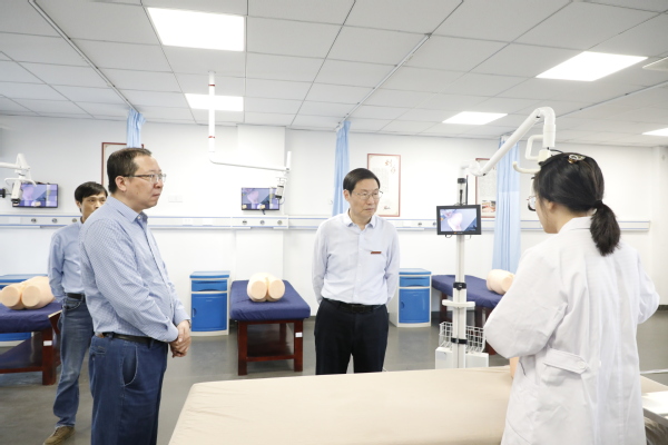 俞继业走访了共富学院、工业互联网实训中心、医护康养实训中心、大健康公共实训中心,详细了解我校学会服务站建设、实训室建设、科技创新和成果转化等工作情况。