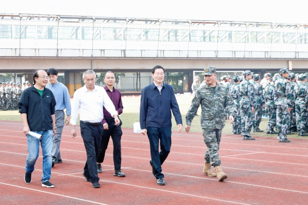 10月10日,校党委书记徐须实、党委副书记何百通一行来到2024级学生军训现场看望慰问带训教官和学员。