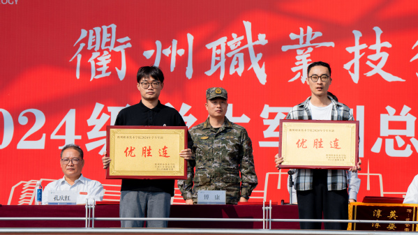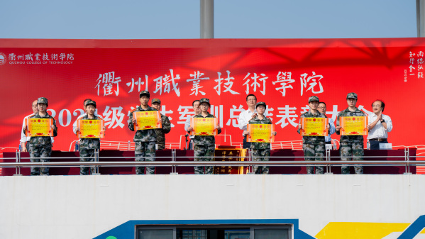 学校领导和承训部队领导为2024级学生军训工作先进集体和先进个人颁奖。