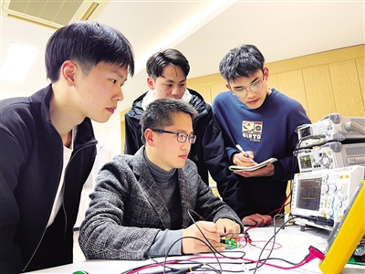 江达飞带领工作室成员调试电路板