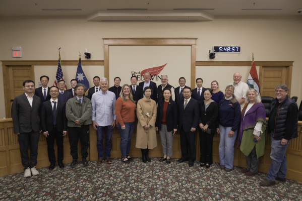 在雷德温期间,学校出访团还与衢州市友好代表团共同参加美国雷德温市与衢州市建立姐妹城市30周年暨艺术家交流20周年系列纪念活动,在市长麦克·威尔逊(Mike Wilson)陪同下,拜访雷德温市政厅和议会,参加雷德温企业午餐会,参观雷德温著名鞋厂,了解当地轻工制造业和商业文化。