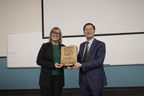 2024年正值衢州市与美国雷德温市建立友好姐妹城市30周年,衢州市友好代表团一行19人拜访明尼苏达州立东南科技学院,战略规划副校长詹妮弗·霍金斯(Jennifer Hawkins)热情接待。徐须实介绍了学校的基本情况、国际交流合作发展情况以及与东南科技学院建立友好关系的历史渊源,并表达了两校能重续友好合作关系的愿望,以此加强和提升衢州市与雷德温市友好姐妹城市关系。霍金斯副校长表示对两校建立姐妹学校这项工作非常感兴趣,希望有机会到中国拜访江南网页版。双方就教师互派交流和青年学生来华研学等合作事项进行会谈。