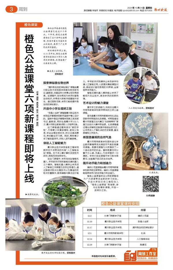 新的精彩即将上演。从11月开始,橙色公益课堂将陆续推出六项令人期待的新课程,热情邀请广大读者来上课。