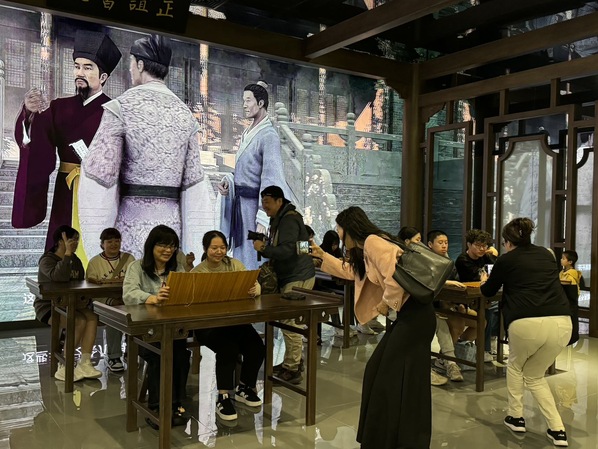 在衢州市城市展示馆,衢州发展历程让青年师生深刻感受到衢州的独特魅力和无限潜力。衢州市城市展览馆作为展示城市形象的重要窗口,采用多元化艺术表现形式,将现代高科技技术融入展示环节,全景式立体化展现衢州城市溯源、起势、扬帆、远航的发展轨迹。