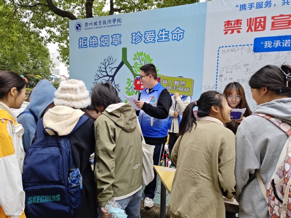 活动中,特别设置了“我承诺,我戒烟”签名墙。同学们纷纷在墙上签名,承诺戒烟或支持禁烟。签名墙上密密麻麻的名字,不仅见证了同学们的决心和勇气,更体现了大家对无烟校园建设的共同期待和承诺。为了鼓励更多同学参与禁烟宣传,活动还特别设置了答题活动。凡是在签名墙上签名的同学,都有机会参与答题赢取精美的礼品。