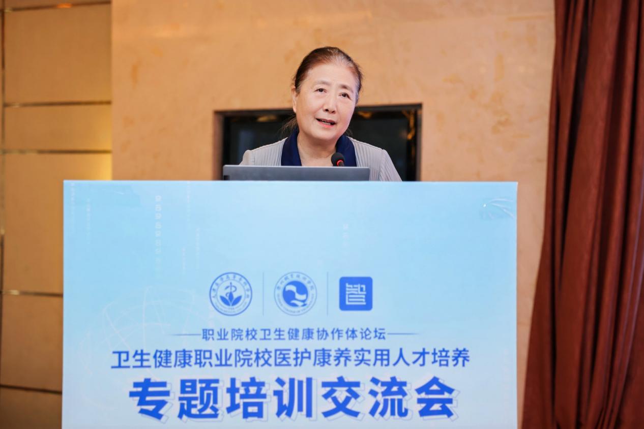 全国医护康养服务能力重构研究中心主任、病原生物与免疫学科国家二级教授胡野作题为《“能力重构”是高职卫生健康类专业增强社会需求匹配度的重要环节》主题报告。