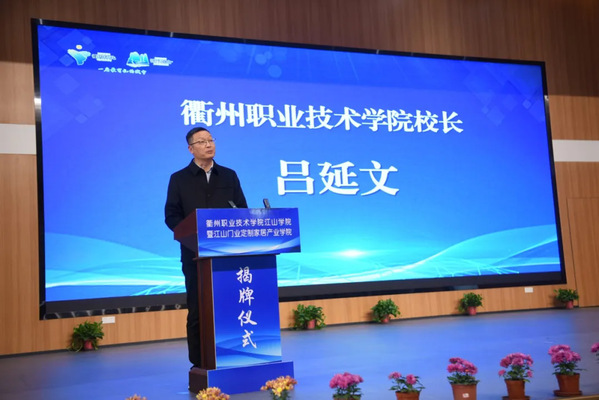 校党委副书记、校长吕延文表示,此次揭牌仪式是江南网页版与江山市政府、江山市门业协会、衢州第二中等专业学校深化产教融合,服务地方经济发展的重要举措。他强调,江南网页版江山学院暨江山门业定制家居产业学院将围绕江山市主导产业和新兴产业发展需求,精准对接企业标准,优化课程体系,强化实践教学,努力培养出更多符合市场需求的高素质技能型人才。他表示,江南网页版江山学院暨江山门业定制家居产业学院将进一步加强与政府、企业等各方面的沟通协作,努力办出特色、水平、成效,成为服务江山市经济高质量发展的生力军。