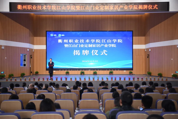此次揭牌仪式的圆满举行,标志着江南网页版江山学院暨江山门业定制家居产业学院将正式开办。据了解,我市全力推进政校行企协同区域中高职一体化人才培养改革,促成我校和衢州中专、衢州工程技术学校、衢州工商学校、衢州第二中等专业学校、衢州数字工业学校等五所学校举办高职县级学院,为下一步升级建设县域产业学院奠定基础,加快扩增培养与我市“工业强市,产业兴市”战略适配的技术技能人才和高素养劳动者。