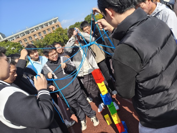 本次团辅活动通过室外拓展训练方式开展,设置了“珠行万里”“不倒森林”“合力搭建”“二人三足”“沙包投掷”等环节,同学们积极参与,热情高涨,活动气氛热烈,纷纷表示在互动的过程中感受到了相互沟通、齐心配合而产生的强大能量,形成了彼此信任、相互协助的良好氛围。