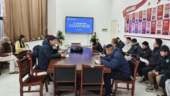 为进一步提高参赛教师对教师教学能力比赛和学生职业技能比赛的认识,12月23日下午,文化旅游学院召开赛事启动会。会议由文化旅游学院院长郭大勇主持,教育部全国高等学校体育教学指导委员会委员兼公共体育学科组副组长、教育部全国体育职业教育教学指导委员会委员胡振浩教授,学院副院长彭晓倩,副书记邵翔,专业主任、课程组长以及两个赛项的参赛老师和指导老师参会。
