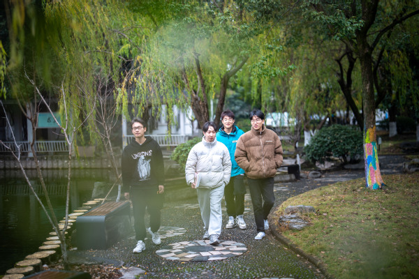和学生走在一起,邵思程更像是他们的同学