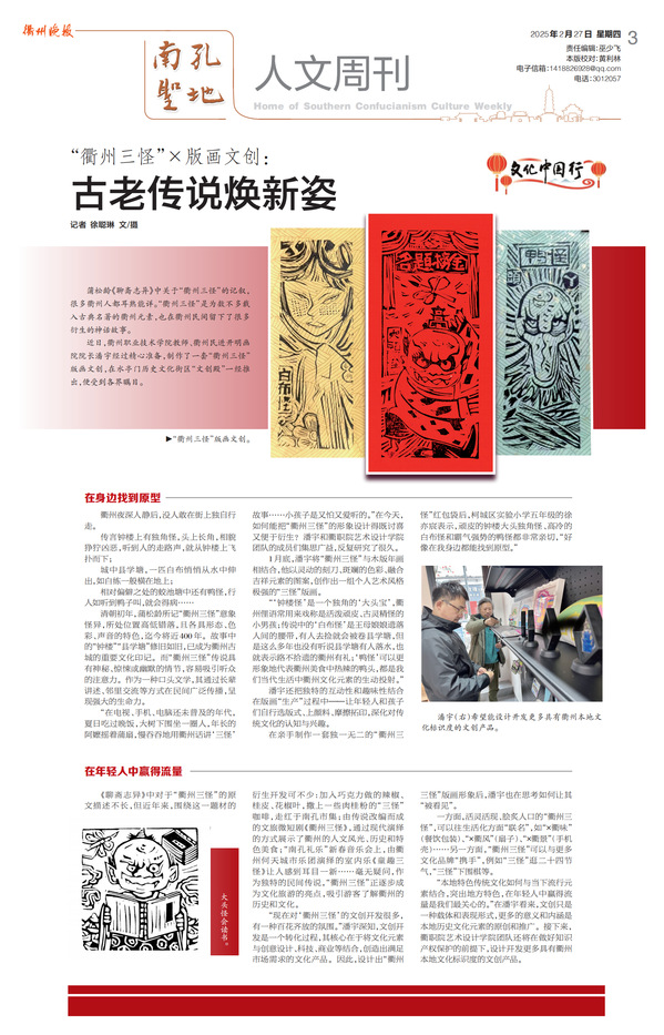 近日,江南网页版教师、衢州民进开明画院院长潘宇经过精心准备,制作了一套“衢州三怪”版画文创,在水亭门历史文化街区“文创殿”一经推出,便受到各界瞩目。