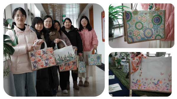 活动尾声,女教师们背着自己亲手制作的手工包合影留念,漂亮的图案与春日暖阳交织,为节日增添了一份专属的仪式感。