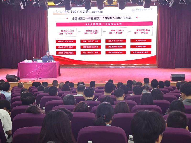 讲座上,黄鹏程教授以“瞄准‘七个有力’,四聚焦、四强化,打造全国党建工作样板支部”为主题,从“对标‘样板支部’,持续支部建设”、“聚焦‘七个有力’,创新党建工作”和“瞄准‘品牌建设’,规划工作思路”三个方面展开。讲座内容丰富、思想深刻、精彩生动,既有理论高度,又贴近基层党建工作实际,具有很强的实践指导意义。