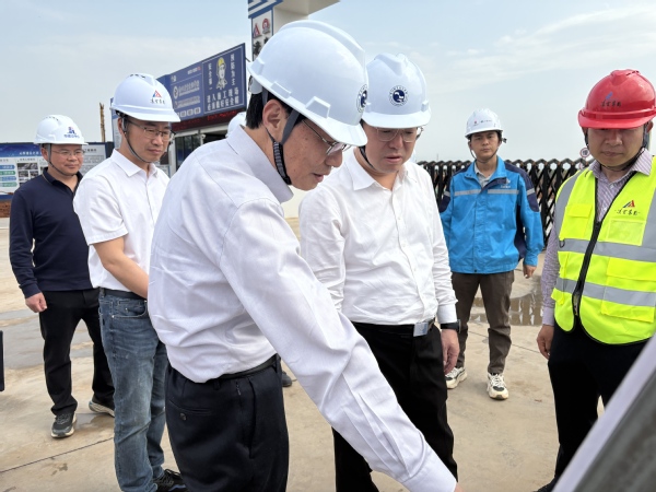 邵潘锋一行实地走访调研了医学实训楼、产教融合中心建筑组团等施工现场,详细了解新校区项目用地、投资、建设规划、功能布局、设计理念以及全面开工建设等方面的情况。