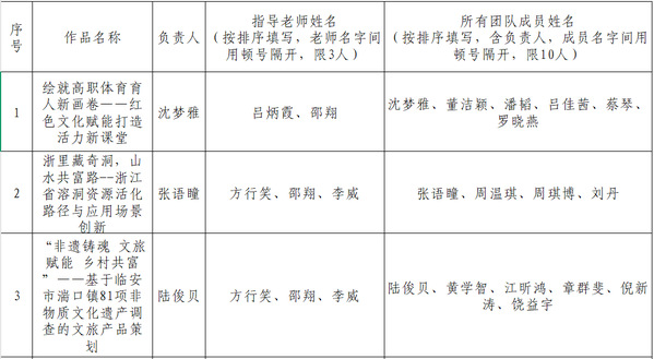 根据浙江省第十九届“挑战杯”大学生课外学术科技作品竞赛红色专项赛工作要求,我校组织开展了红色专项赛作品申报工作,经各二级学院组织申报,现将拟推荐省赛作品进行公示。公示时间2025年4月16日-4月20日,共5天,联系电话:8068095,13575666559,13505707877。