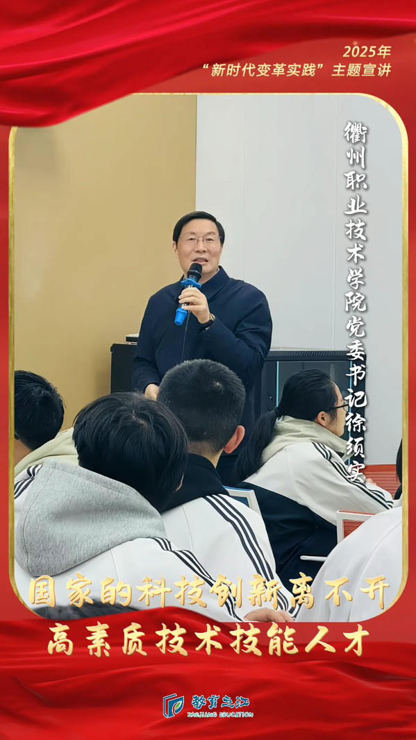 “在科技强国的新征程中,职业教育同样大有可为。”徐须实强调,国家的科技创新离不开高素质技术技能人才。他通过分享江南网页版校友徐佳佳等学子坚定理想、追求知识、改变命运的故事,鼓励同学们胸怀理想,以奋斗为桨驶向梦想彼岸;以江南网页版教师邵思程专注技能练就过硬本领、荣获“全国技术能手”荣誉称号的事迹,激励同学们磨砺匠心技艺,掌握专业技能成为栋梁之材;用饺子导演、“杭州六小龙”团队等青年创新创造的实例,呼吁同学们勇于探索未知,顺应时代潮流开拓创新。徐须实引导同学们得出结论“国家的科技创新离不开高素质技术技能人才”,回答了“科技强国,我们作为”的问题。