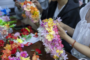 5月7日至9日,工匠技能和非遗文化体验课程掀起活动高潮。在竹编工艺工坊里,灵动的竹编小鸟展现着传统技艺的现代演绎;非遗扎染与簪花设计工坊中,晕染的方巾与精致的发饰诠释着传统美学的当代生命力;校园大地艺术创作则以自然为媒,师生们巧妙运用石头、落叶等天然材料,在校园里拼绘出充满创意的生态画卷。此外,浮雕工坊的精美作品、创意鸟屋的趣味搭建,无不彰显着艺术与劳动的完美结合。最终,这些凝聚智慧与汗水的劳动成果汇聚成展,成为校园里一道亮丽的文化风景线,生动诠释了以劳育美,以美育人的活动宗旨。