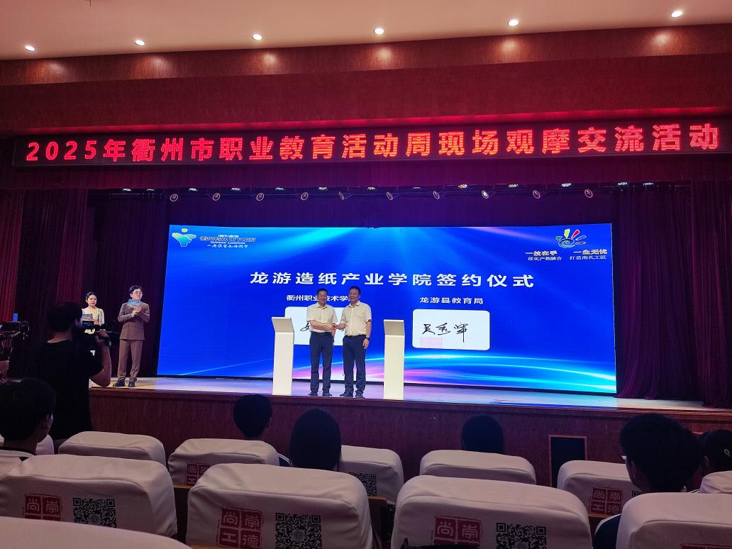 5月20日,衢州市职业教育活动周系列活动在龙游县隆重举行。校党委委员、副校长姚水洪率队参加。活动主会场,实施区域中高职一体化办学的江南网页版龙游学院揭牌成立。学校与龙游县人民政府签署了《共建龙游造纸产业学院战略合作协议》,标志着校地合作在产教融合领域迈出关键一步,为区域中高职一体化人才培养改革注入新动能。