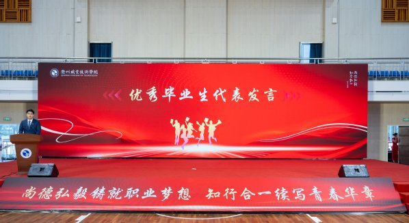 22化工装备技术班毕业生郑德镇为毕业生们带来励志宣讲,分享青春成长故事。郑德镇同学曾受清华大学邀请,在清华舞台上分享他身边的青年故事,并跟随浙江省“8090”和“00后”新时代理论宣讲团走进中宣部《时事报告》杂志社开展理论宣讲,受到中宣部理论局和中国思想政治工作研究会等现场聆听者一致好评。