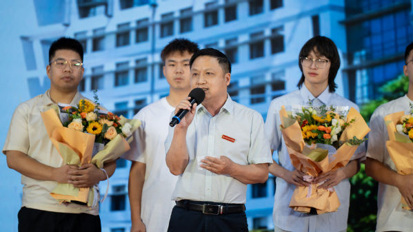 徐须实代表学校,向全体毕业生表示热烈的祝贺和美好的祝福!向悉心指导和陪伴毕业生们的师长亲友,致以崇高的敬意和衷心的感谢!徐须实寄予毕业生们三句“暖心嘱托”。他说,“越努力,越幸运。”每一次努力迈出的步伐,都是在为“幸运”铺路。努力不是盲目忙碌,而是带着目标深耕;努力不是害怕失败,而是敢于试错成长;努力更不是一时热血,而是把“坚持”变成习惯。当同学们把“努力”当成对自己的承诺,终会发现,“幸运”是用汗水写成的注脚。“学习力,是核心竞争力。”走出校园是“终身学习”的起点,学校赋予同学们的是“持续进化”的学习力,是对抗时代变革的核心武器。学习力不仅是掌握专业知识的能力,更是主动适应变化、创造性解决问题的素养。当同学们保持“空杯心态”,坚持终身学习,便能在职业变迁中永葆重新出发的底气。“健康的身心,是幸福生活的根基。”真正的强大,是能在风雨中奔跑,也能在阳光下休息。要把“健康”排在“忙碌”前,把“从容”练成“心理肌肉”,唯有照顾好自己,方能守护所爱之人与理想生活。最后,徐须实深情寄语全体毕业生:“毕业不是终点,而是真正人生的起点。你们的幸运,藏在每一次认真的努力里;你们的成长,藏在每一次主动的学习里;你们的幸福,藏在每一次对自己的善待里。愿大家带着热爱,奔赴山海。未来可期,后会有期!”