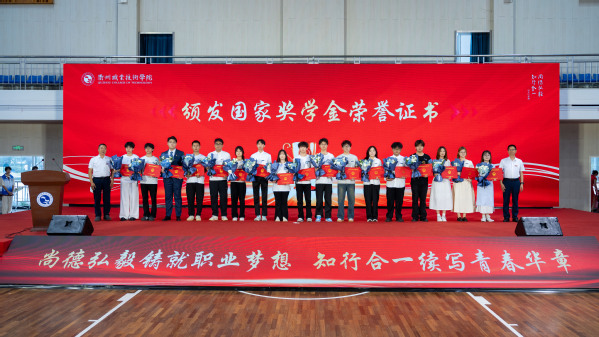 方焕云、余建军为国家奖学金获得者颁发荣誉证书。