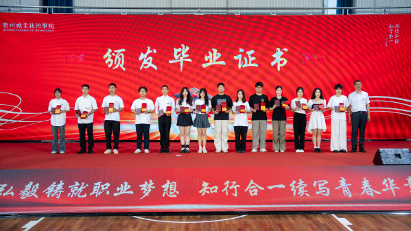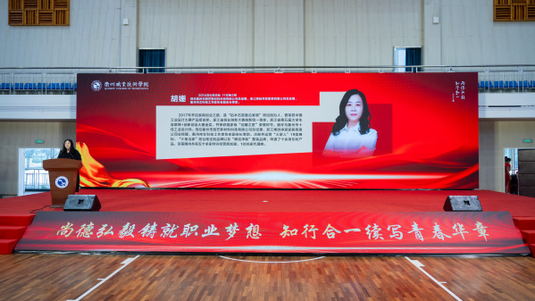 2014届文秘专业校友、衢州市西芒新材料科技有限公司总经理、浙江烯硅净装家居有限公司总经理、衢州市女科技工作者协会副会长胡姗为2025届毕业生代表颁发校友大使聘书,并与毕业生们分享了她的大学生涯和创业经历,激励新一届衢职人勇毅前行!