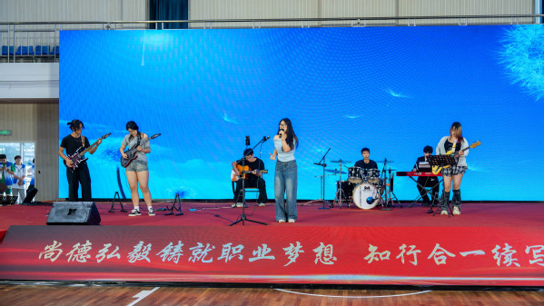 师生们以歌声传递祝福,歌曲串烧《世界赠予我的》《夜空中最亮的星》等旋律悠扬,用音符诉说成长路上的温暖与力量;压轴登场的《祝你一路顺风》充满希望,在悠扬的旋律中凝聚着对毕业生的真挚祝愿,为盛典增添温馨动人的色彩。