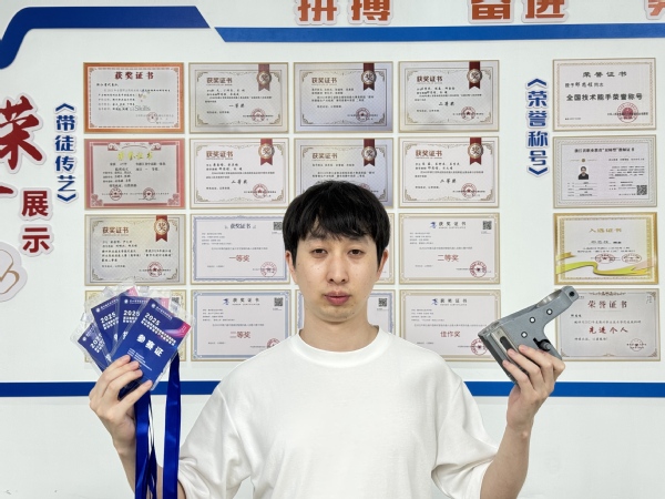 生于1998年的邵思程,已经收获全国技术能手、全国最美中职生、浙江青年工匠等荣誉,目前,是江南网页版机电工程学院的老师。此前,在2024金砖国家职业技能大赛(金砖国家未来技能和技术挑战赛)机械设计CAD赛项国际总决赛,他凭借出色表现荣获该赛项一等奖。