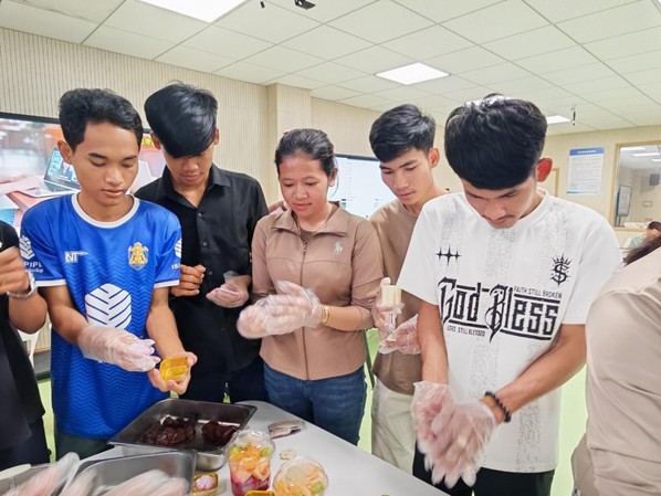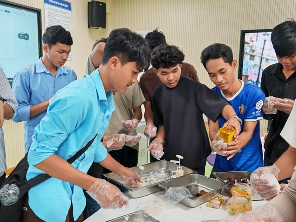 恰逢中秋佳节临近,对初来乍到的柬埔寨学子而言,这个象征团圆的节日,成为了他们感知中华传统文化温暖而美好的第一课。9月29日,一场别开生面的中秋主题活动在校园里温情上演。柬埔寨学子们第一次深入了解了中秋节的传说与习俗,更在食堂工作人员的指导下,亲手尝试制作冰皮月饼。从揉面、包馅到压模成型,每一个步骤都充满了新奇与乐趣。中外学子并肩协作,欢声笑语不断,在互动中迅速拉近了彼此的距离。来自柬埔寨的留学生PHAL SAMPHORS在活动中显得格外兴奋。她捧着自己制作的月饼,开心地分享道:“这是我第一次在中国过中秋节,月饼非常美味,中国的传统文化太有魅力了!我很喜欢江南网页版,这里的老师和同学都非常友好。我期待在这里学习先进的专业知识,也希望能更多了解中国的历史和文化,交到很多中国朋友。”简单的话语,流露出她对未来学习生活的无限向往与期待。
